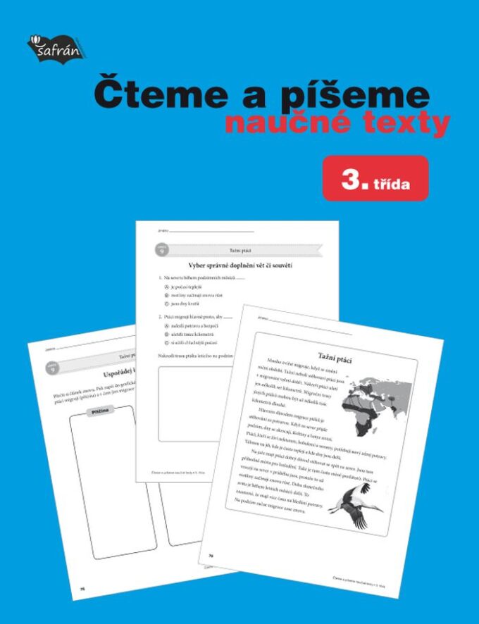 V publikaci najdete 14 lekcí, které se věnují různým naučným tématům. Lekce přinášejí nové a zajímavé informace o přírodě, dějinách a společnosti. Žáci si osvojí obtížnější slovní zásobu, která je s tématem spojená, přečtou si článek a ověří si, zda mu dobře porozuměli. V další části lekce uspořádají informace z příspěvku do grafického organizéru a sepíšou vlastní text na dané téma, ve kterém informace použijí. Žáci se učí psát naučné stati podle vzorového textu. Zároveň si tedy osvojují čtenářské a pisatelské dovednosti (porozumění textu s posloupností, porovnáním, vyjádřením příčin či následků) a využijí tyto postupy ve vlastním textu. Už v třetí třídě mohou žáci s dopomocí napsat jednoduchý odborný text. Publikace navazuje na soubor pracovních listů Čteme s porozuměním každý den.